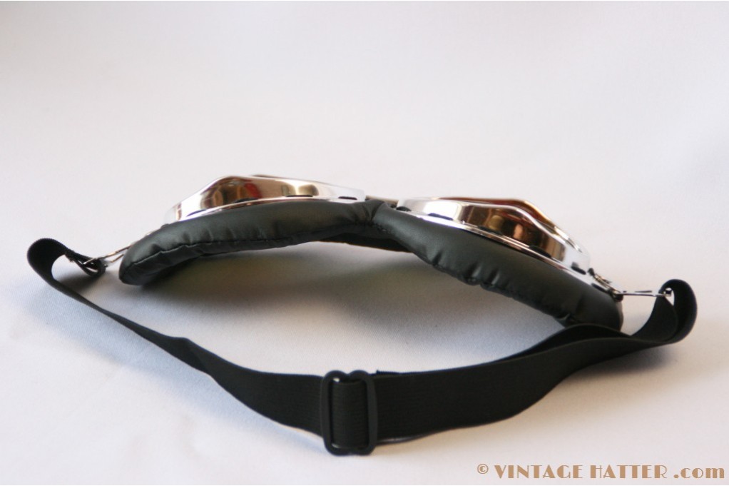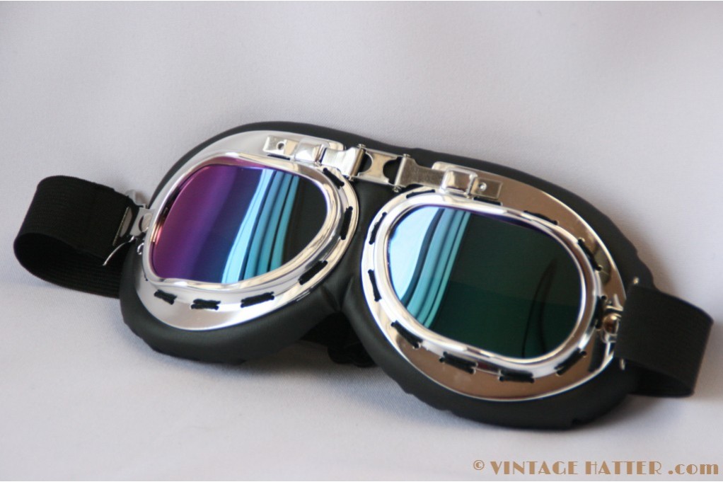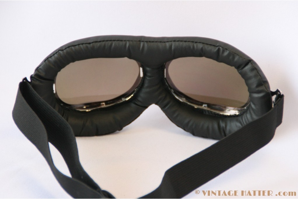 Motorcycle or Aviation goggles with adjustable elastic band.