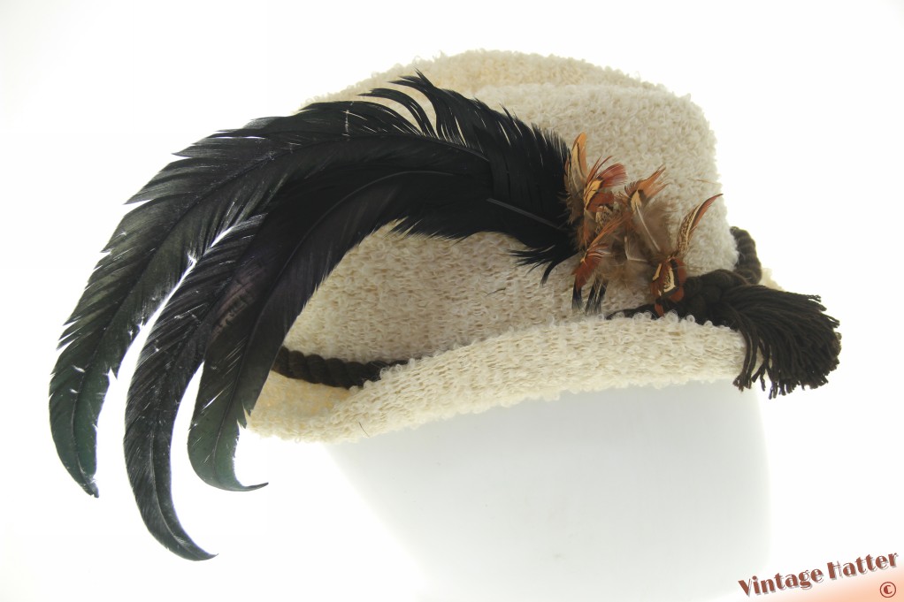 Dameshoed gebroken wit polyacryl wol met lange veren 57