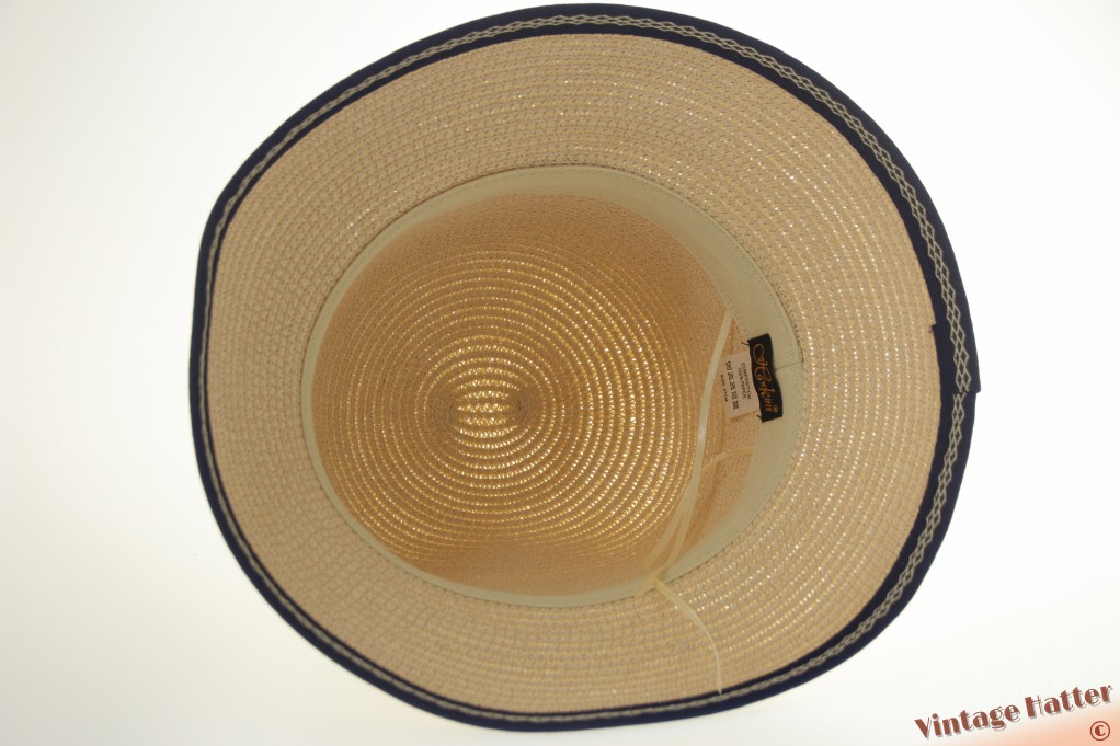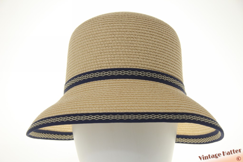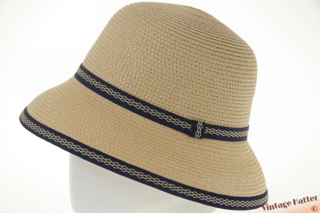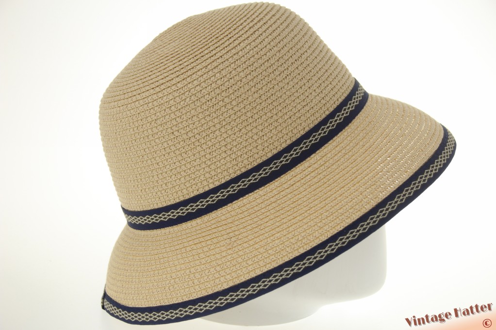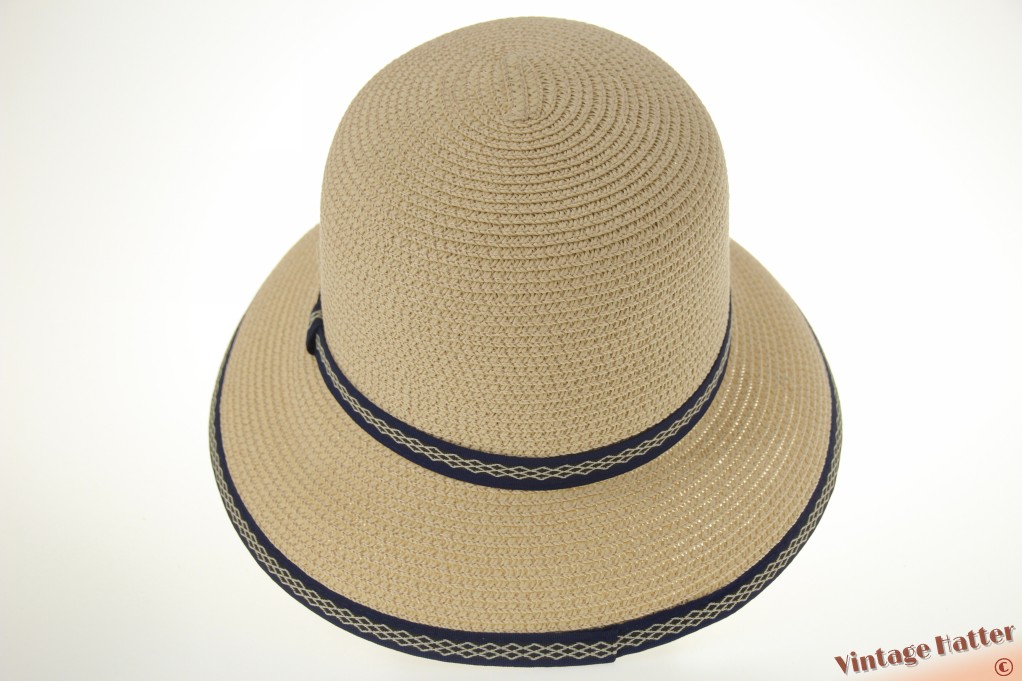Ronde dames zomerhoed Hawkins geel beige met blauwe band 54-58 [nieuw]