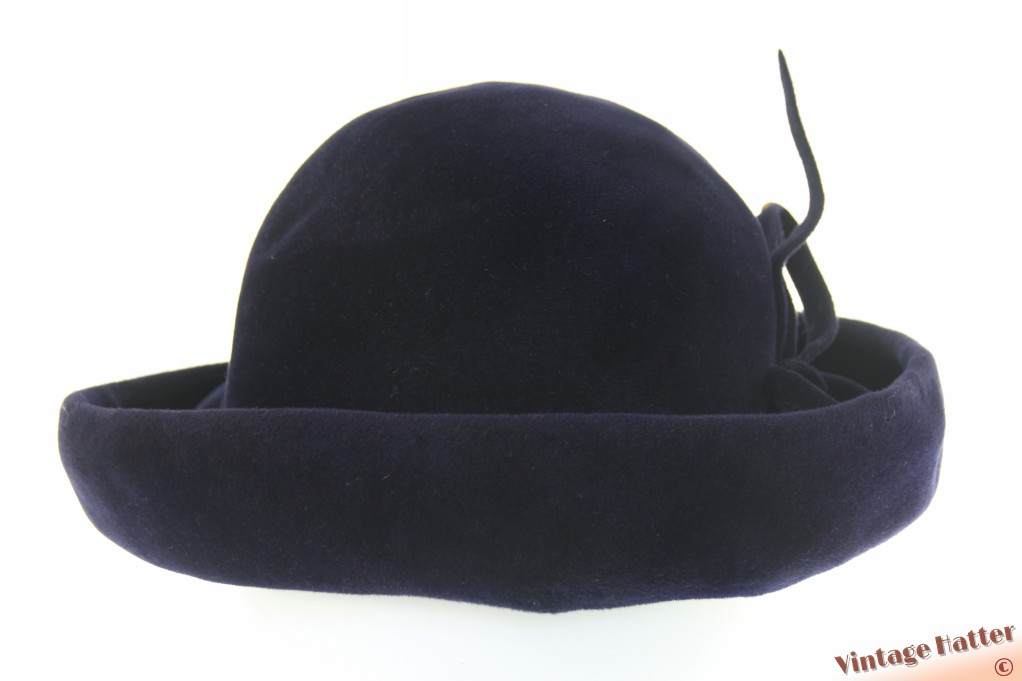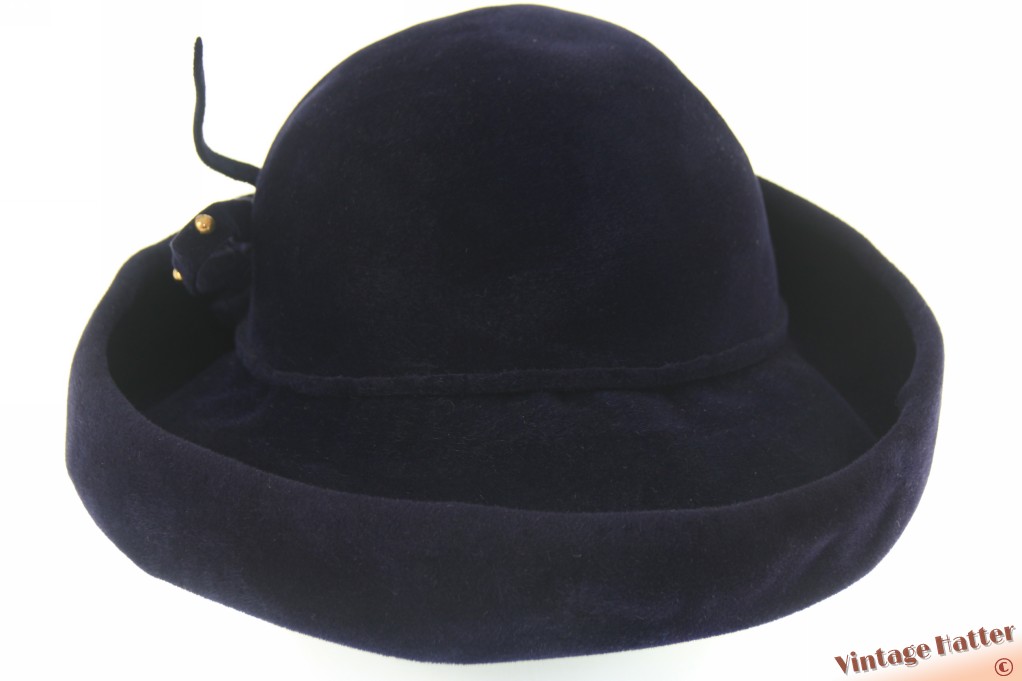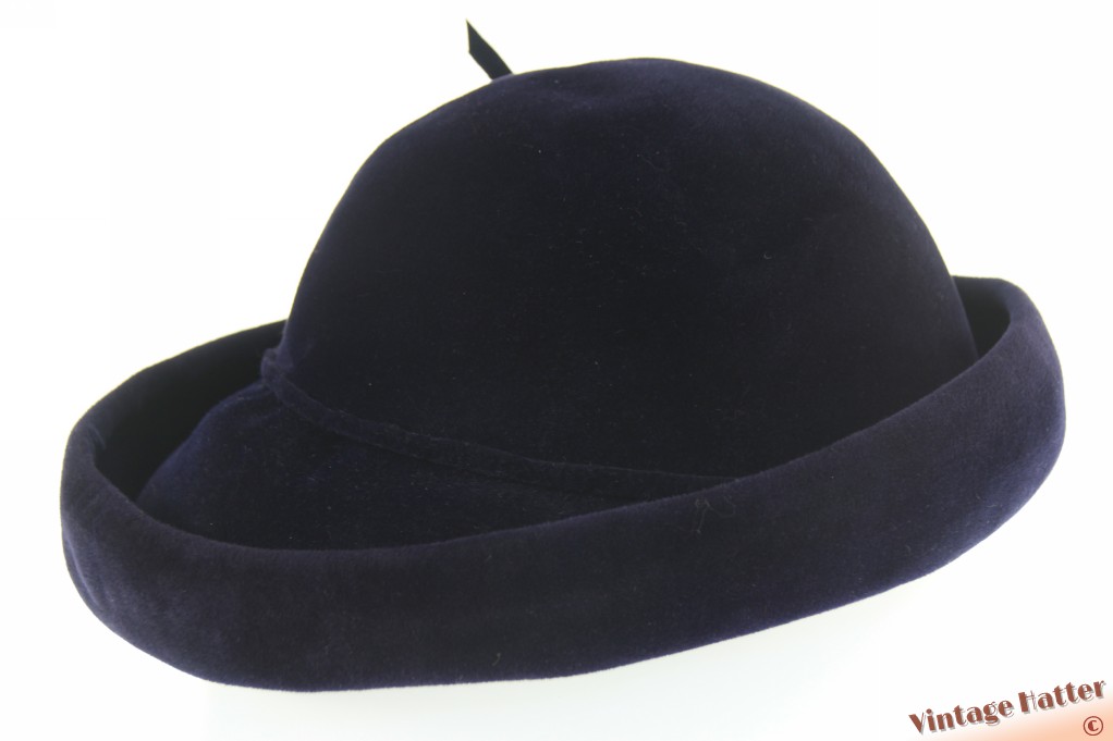 Dameshoed donker blauw velour 53-55 (XXS-S)