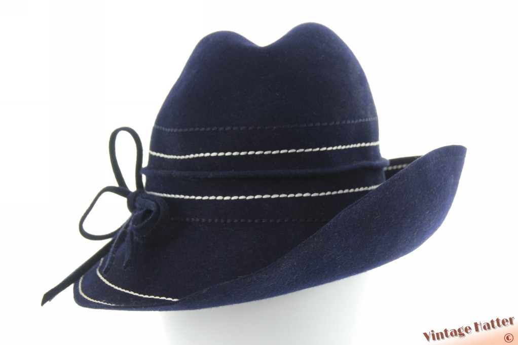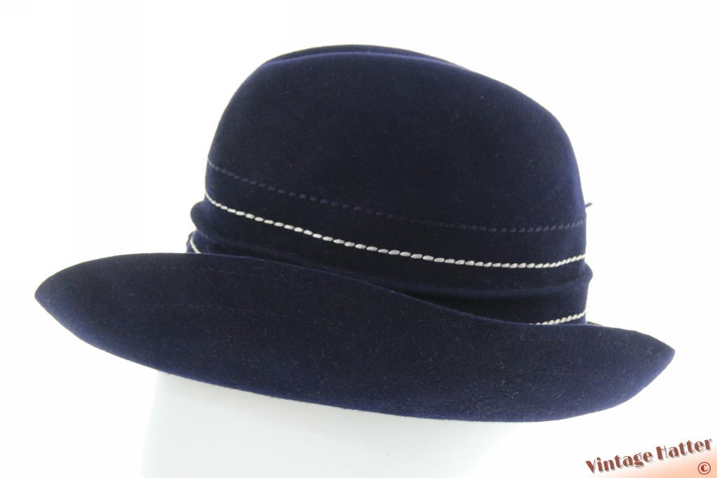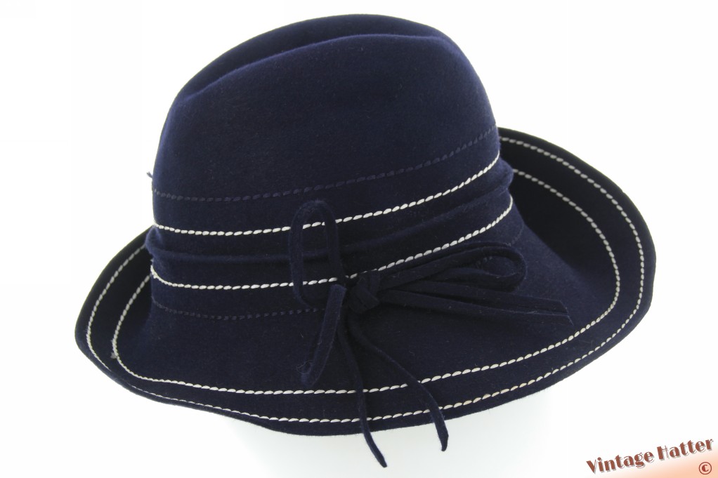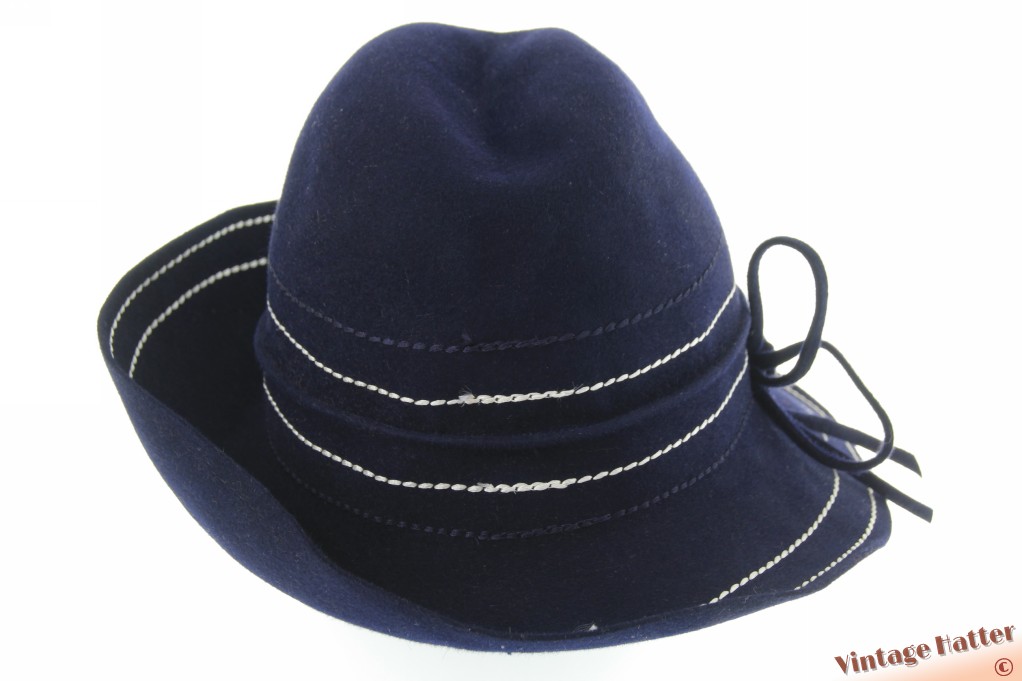 Dameshoed Nandine Modell donkerblauw vilt met witte stiksels 56