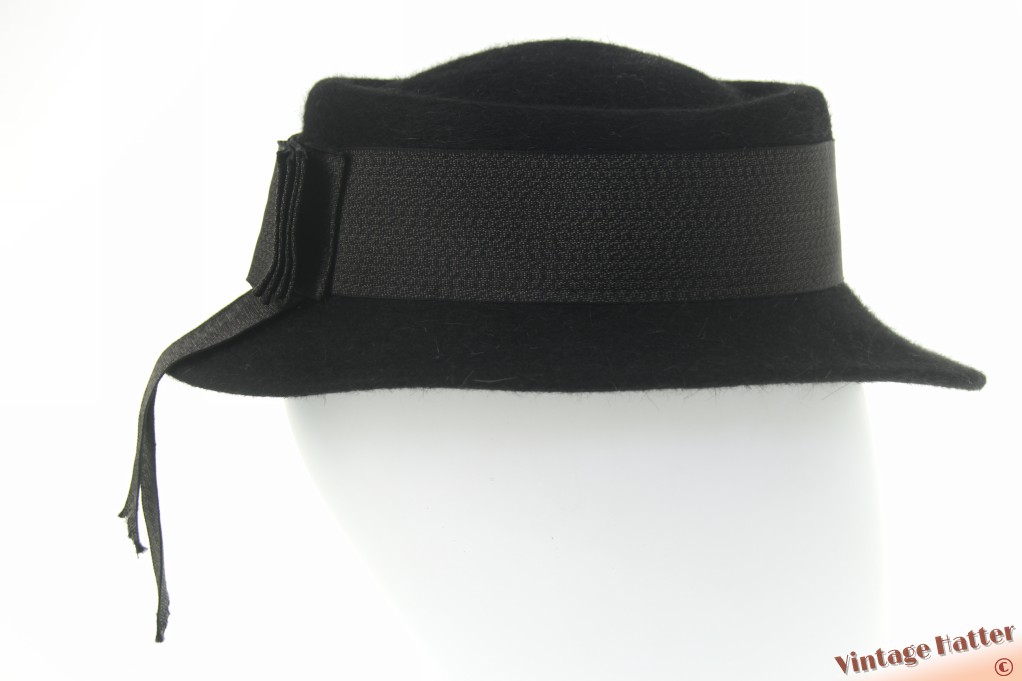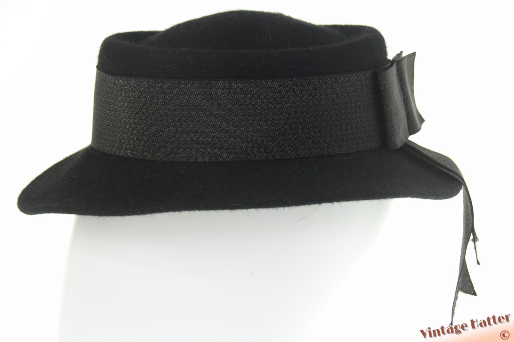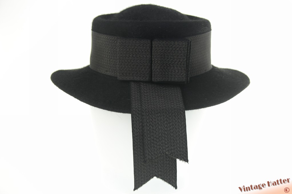 Dameshoed Wegener zwart haarvilt met lint 55 (S)