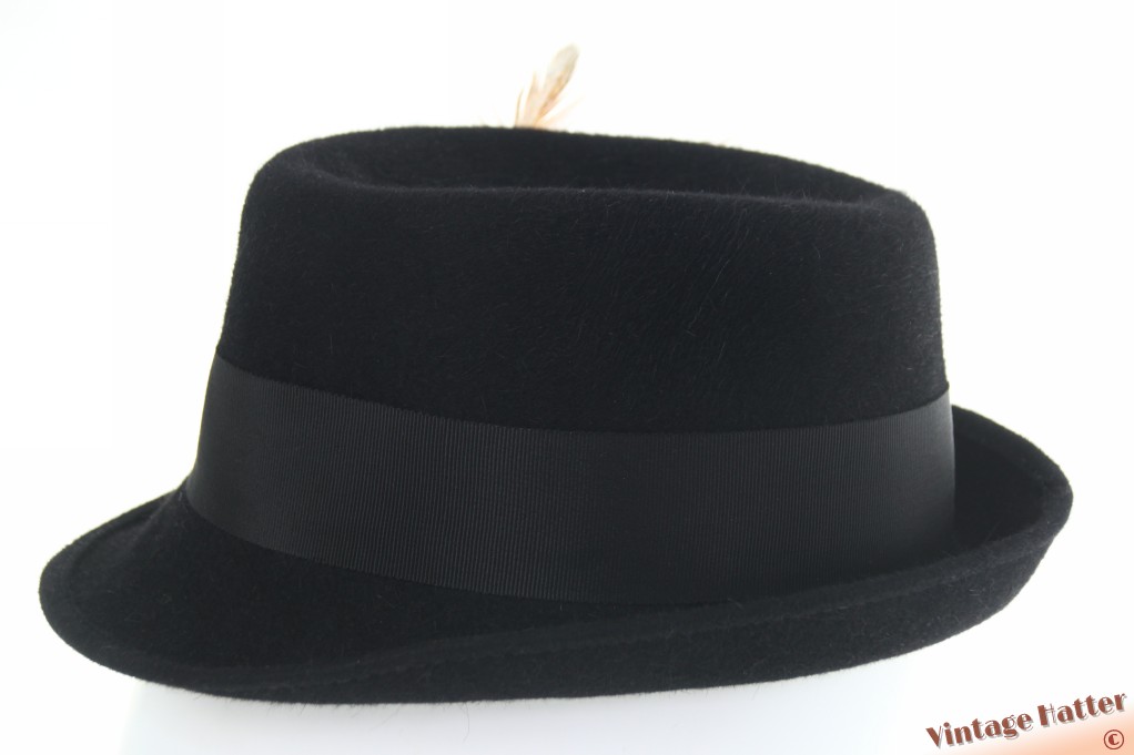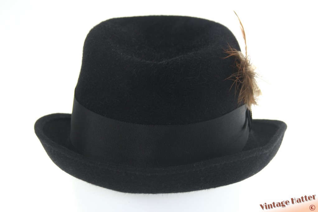Dameshoed in trilby-stijl zwart haarvilt met veren 55 (S)