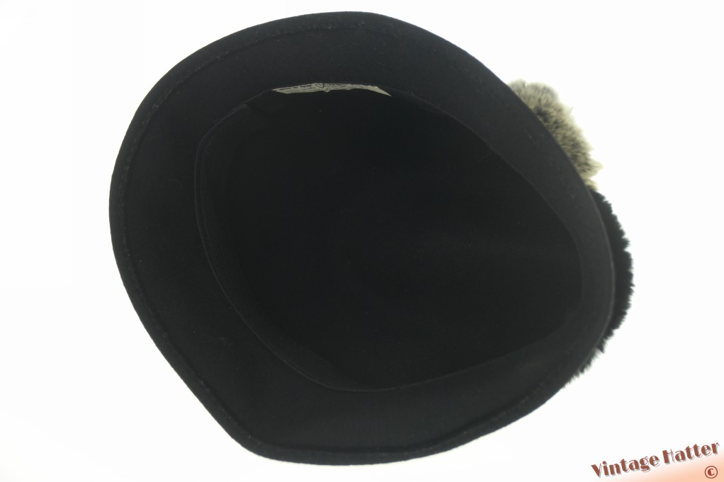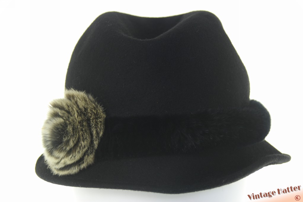 Dameshoed zwart vilt met rand en bloem van bont 56
