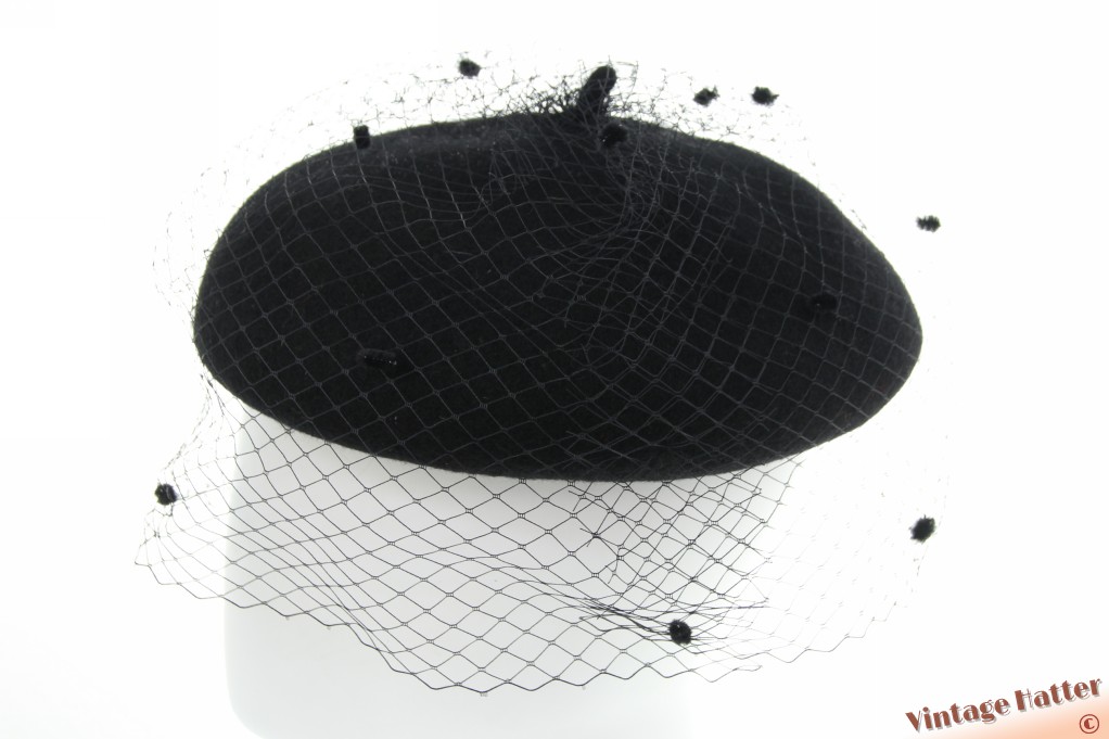Dames cocktail baret Bronté Claar zwart wol met voile 54-58 [nieuw]