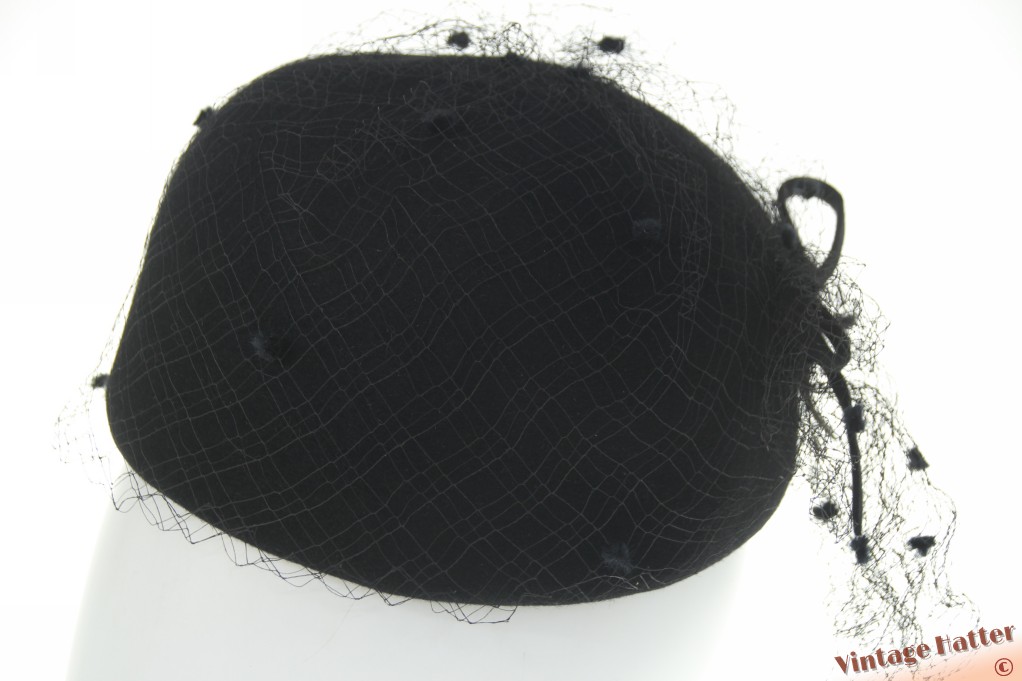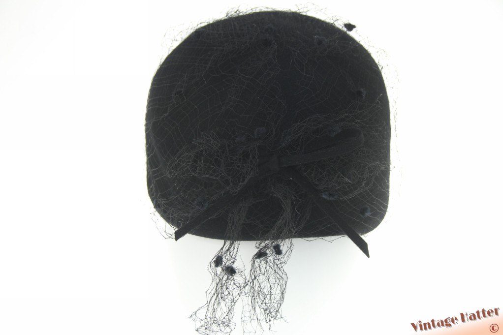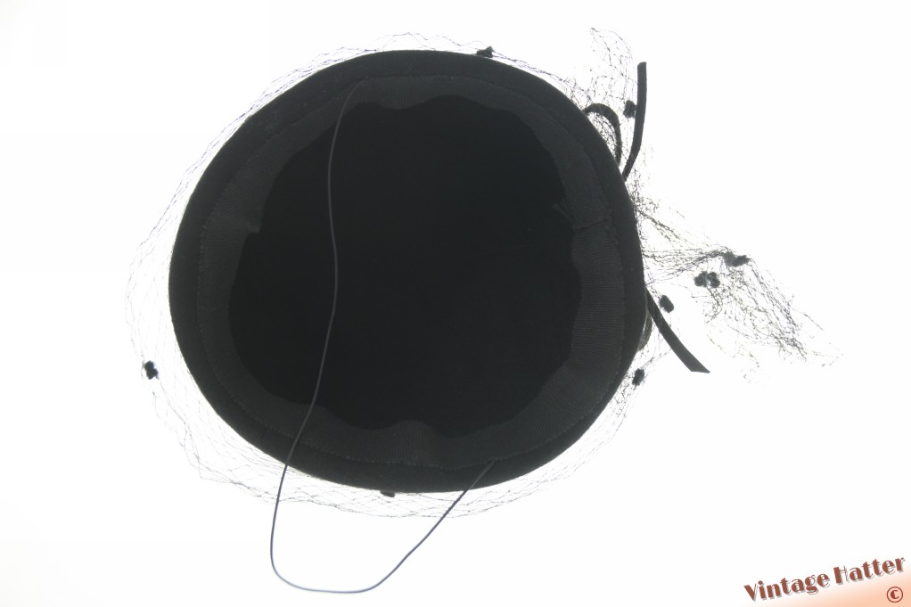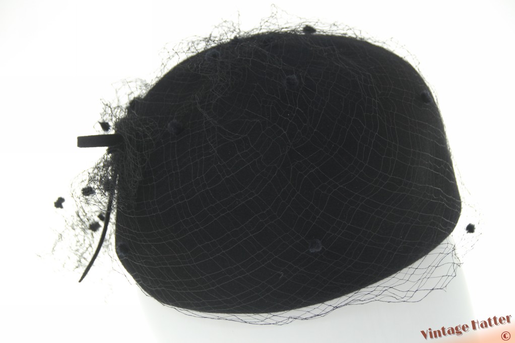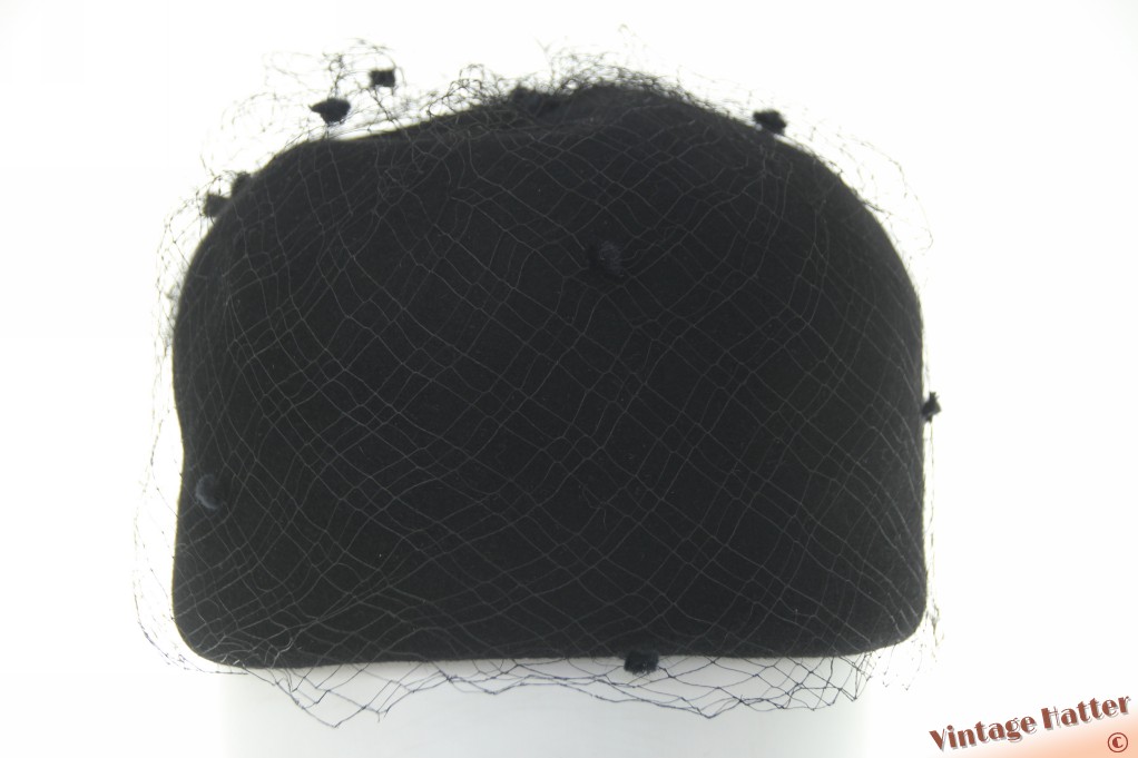 Dames cocktailhoed zwart vilt met aangehechte voile 56-57