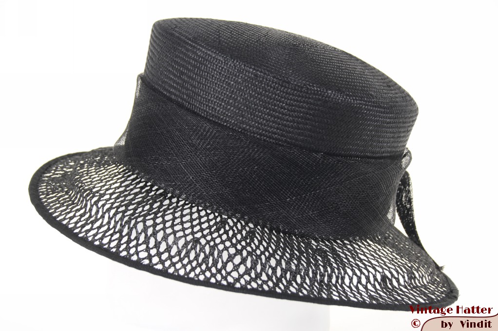 Dameshoed breed art nouveau zwart sisal sinamay 57 [nieuw]