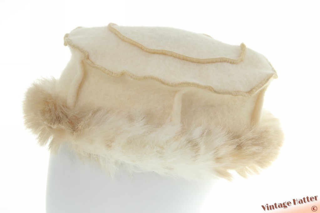 Dameshoed McBurn gebroken wit wol met imitatiebont 57