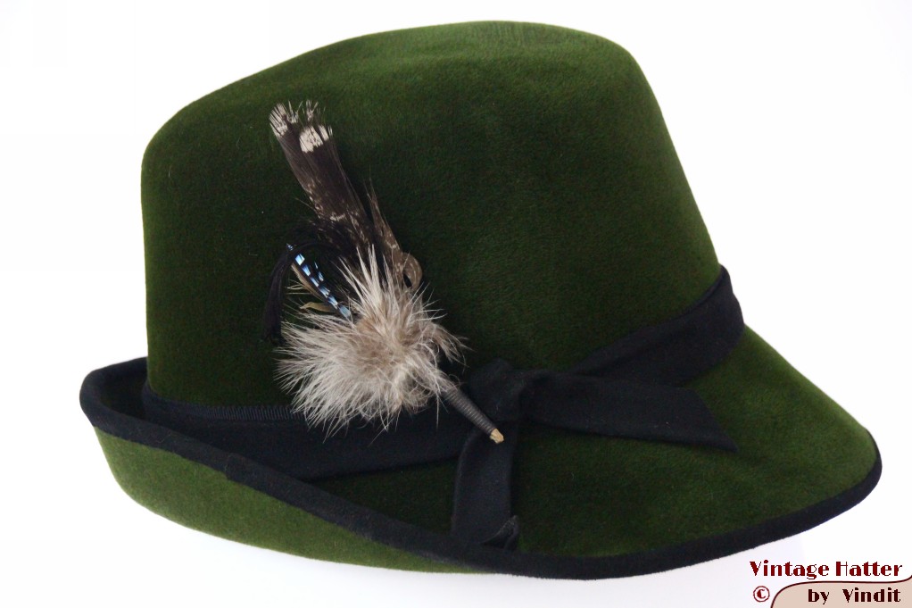 Dameshoed Inselmann groen velour met veren 54 (XS)
