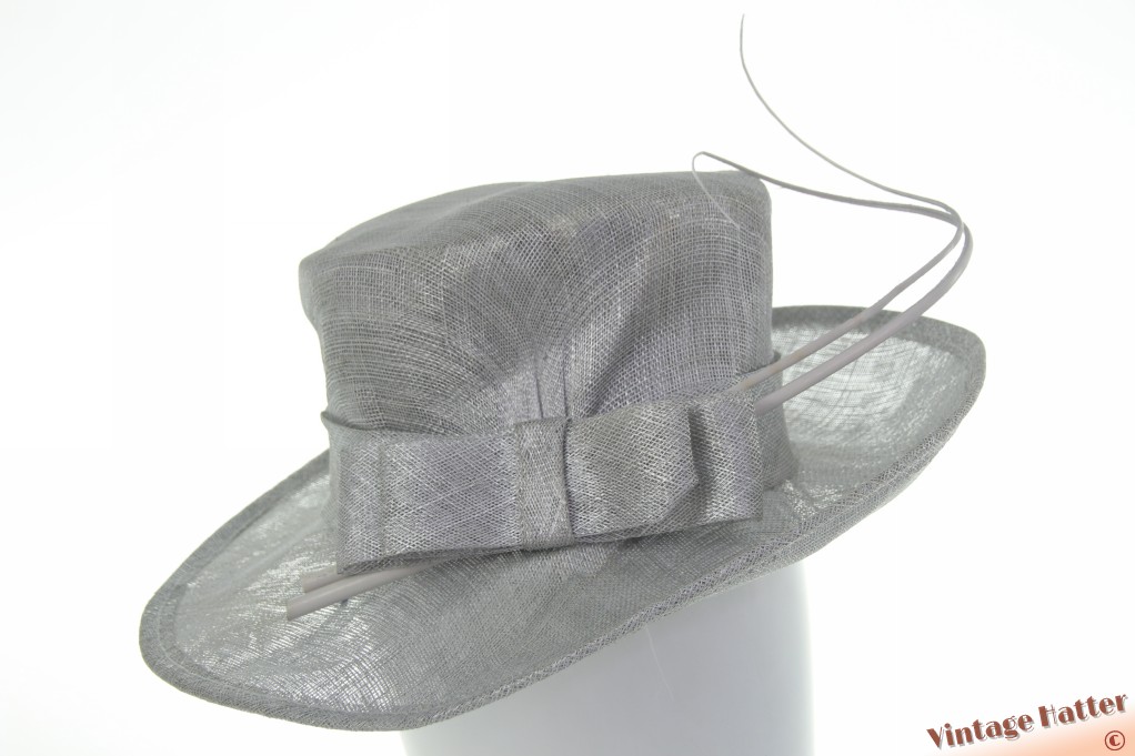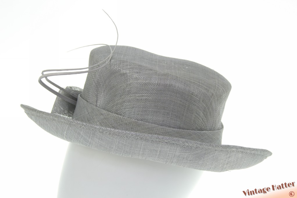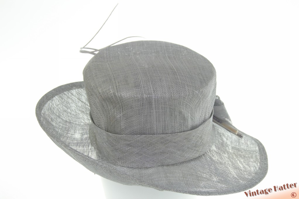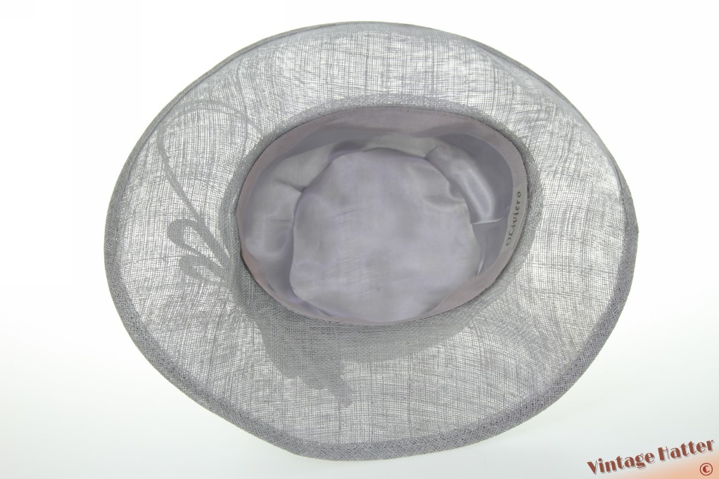 Dameshoed OLiviero zilver sinamay sisal met twee gekrulde struisvogelveren 56