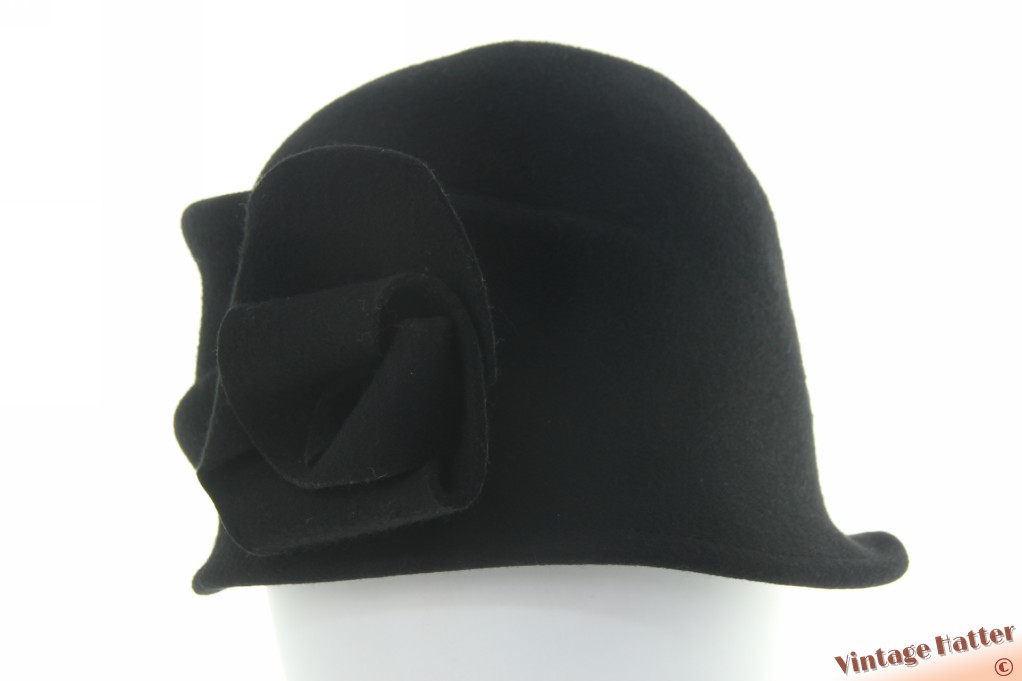 Dames cloche dophoed zwart vilt met vilten bloem 60-61 (XL)