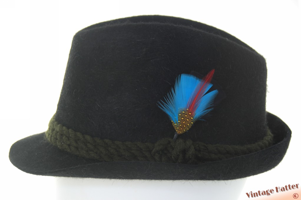 Feathers blue with black base with red feather and yellow dots about 6 centimeters