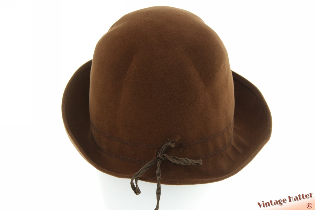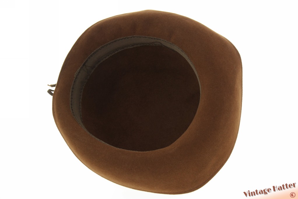 Ladies hat brown velvet with four folds, adjustable size 56