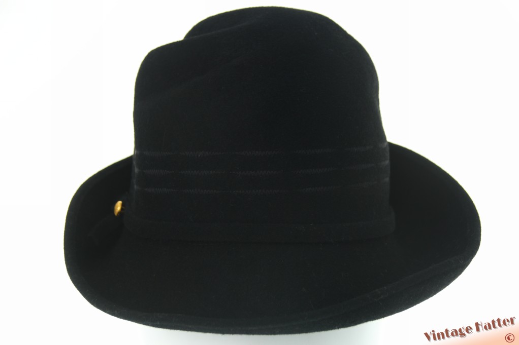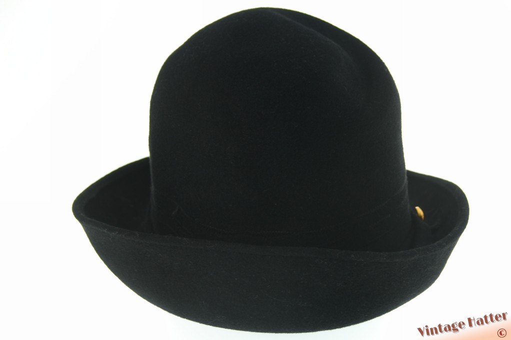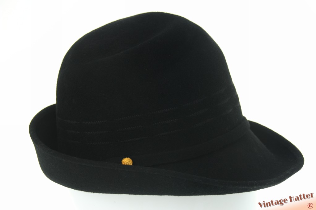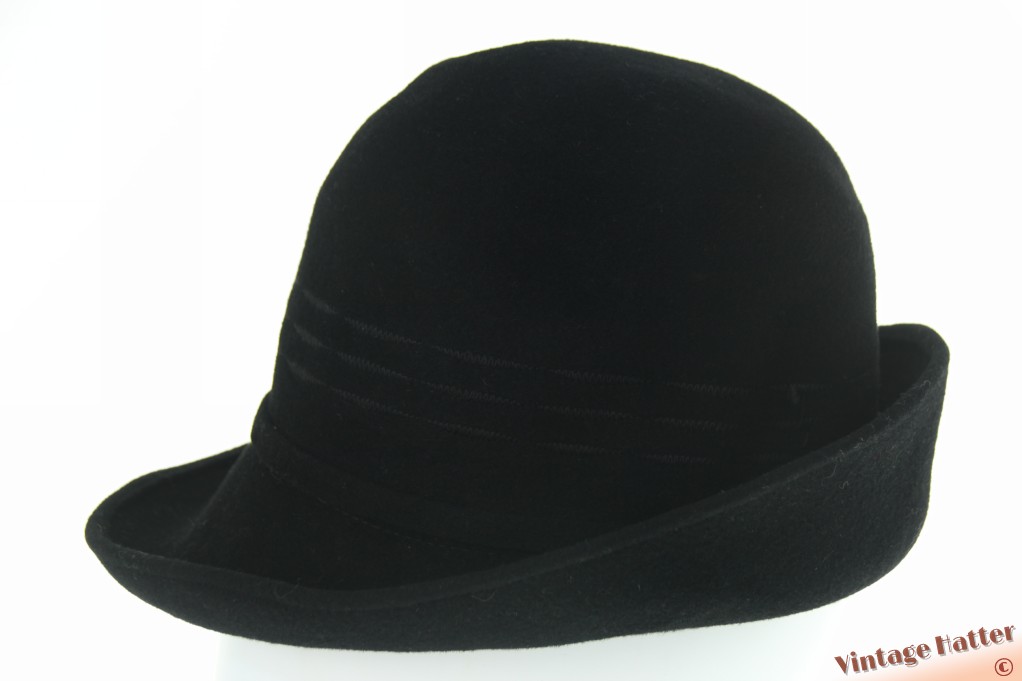 Ladies hat black brushed felt with folds 56