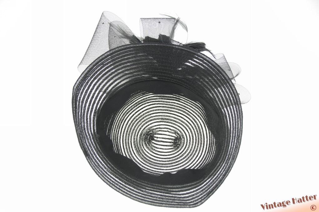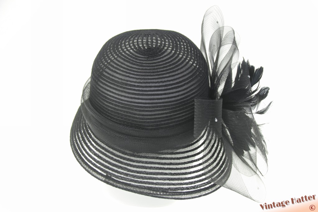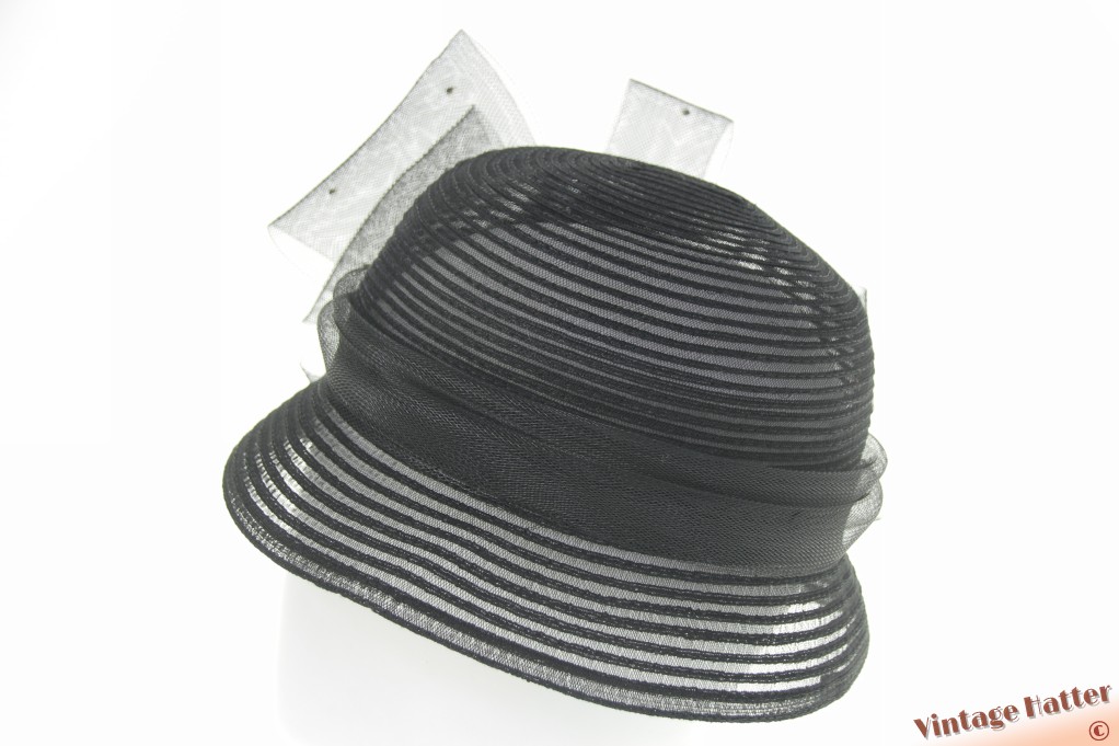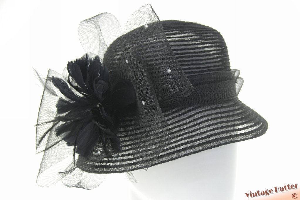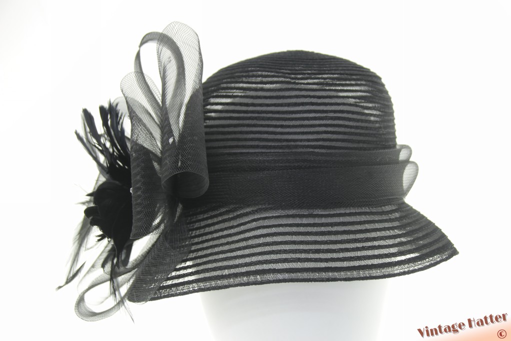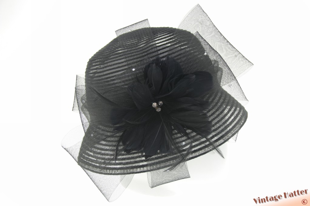 Ladies occasion hat black polyester with large flower of bows 57