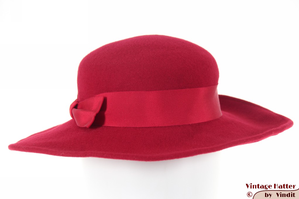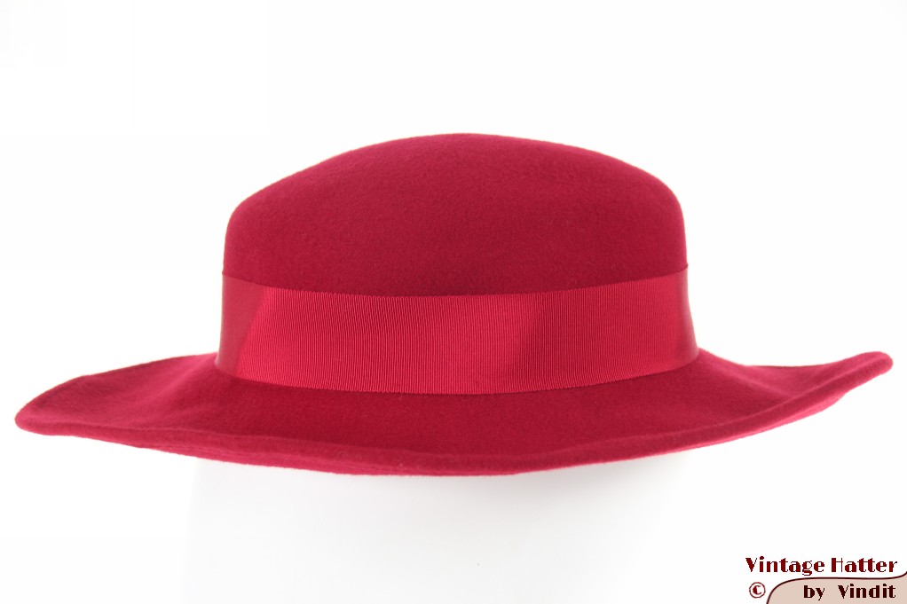 Ladies hat with wide brim red felt 55,5 (S)