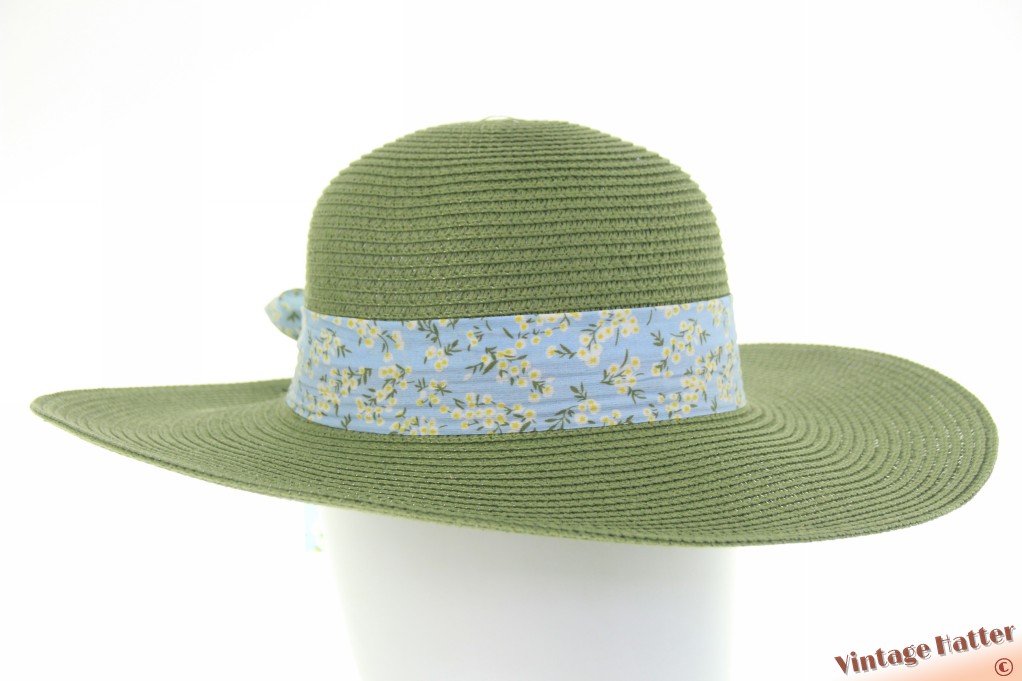 Ladies summer floppy hat Mlle Citron fern green paper mix with light blue flower ribbon 54-57 [new]