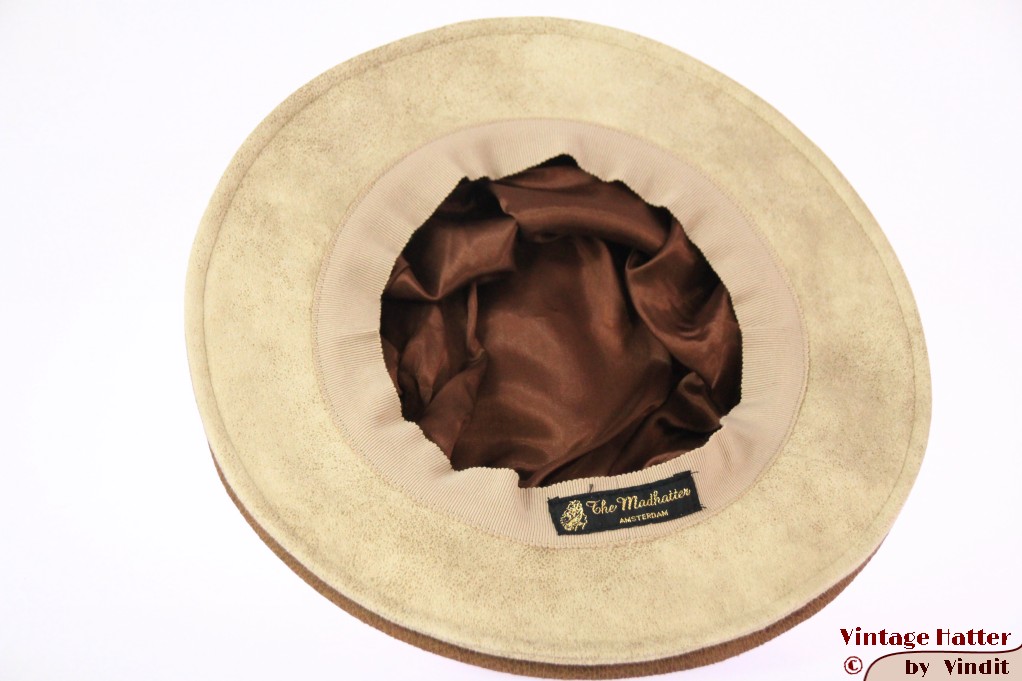 Ladies Pagode-hat The Madhatter yellow beige - caramel faux leather 54-57 [New]