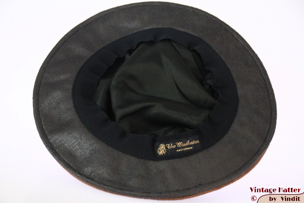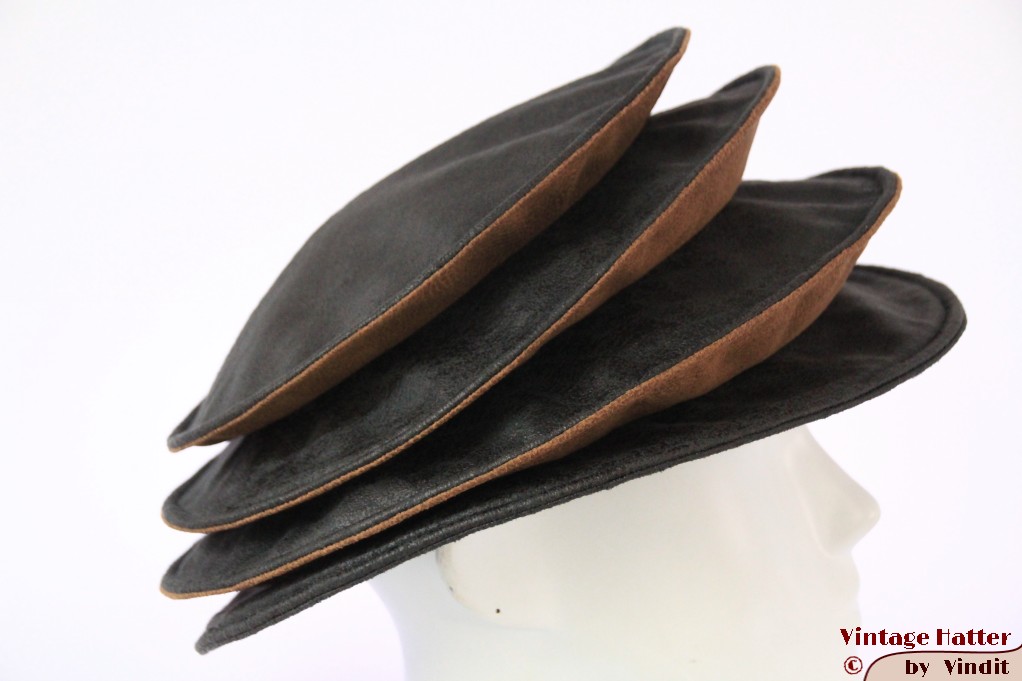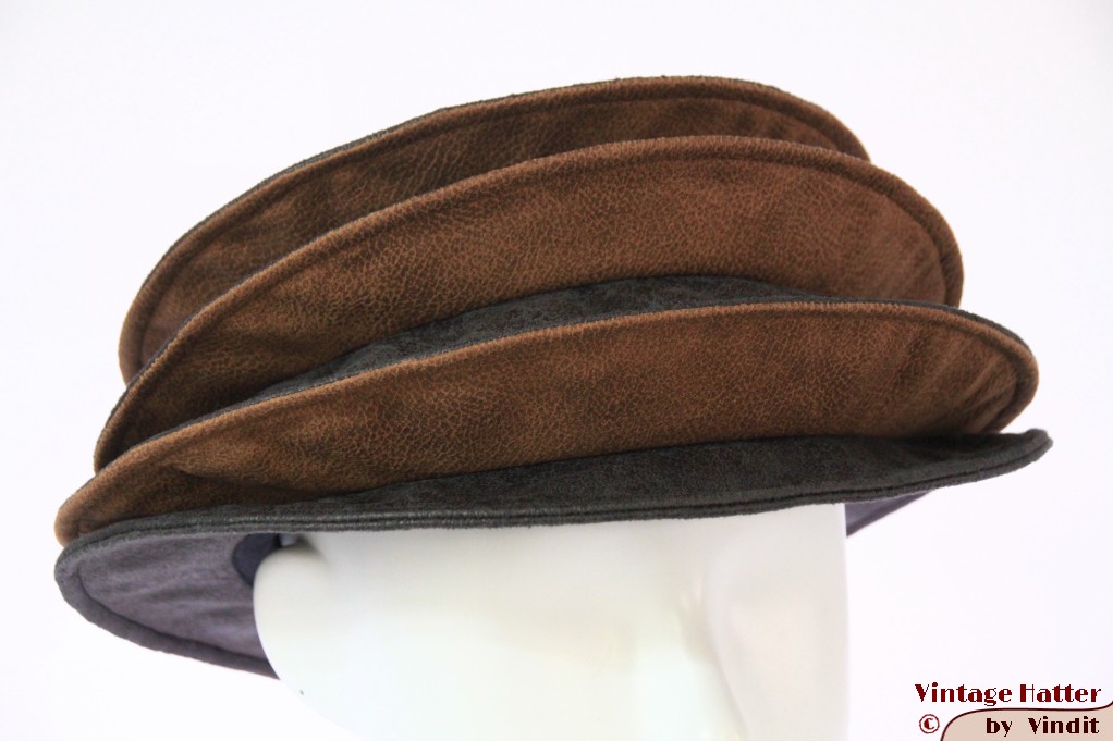 Ladies Pagode-hat The Madhatter blackish grey - caramel faux leather 54-57 [New]