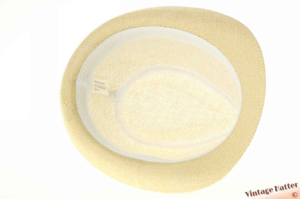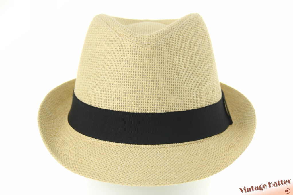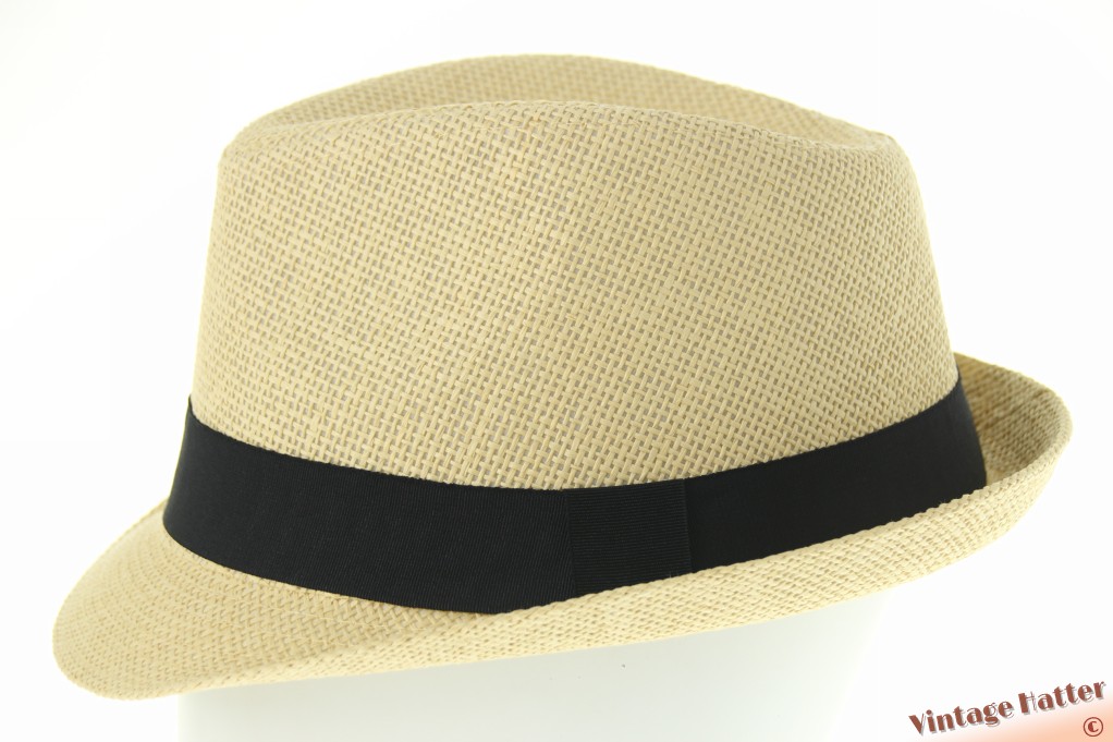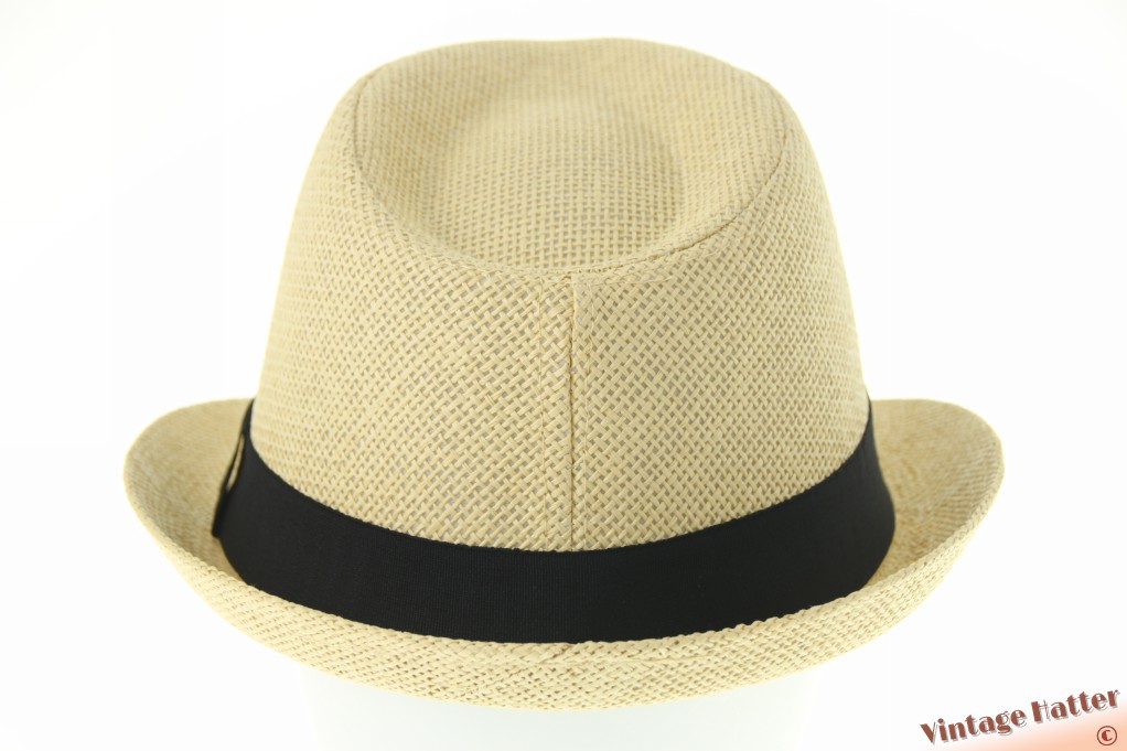 Trilby hat yellow beige coated paper with black band 60 (XL) [new]
