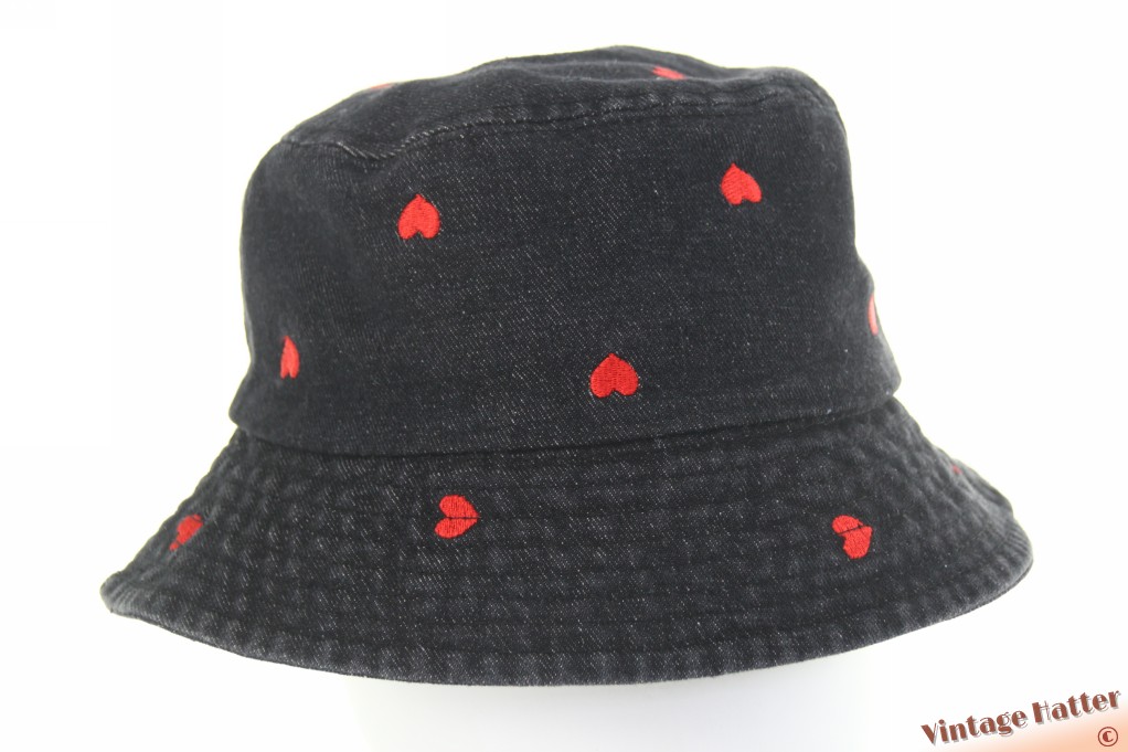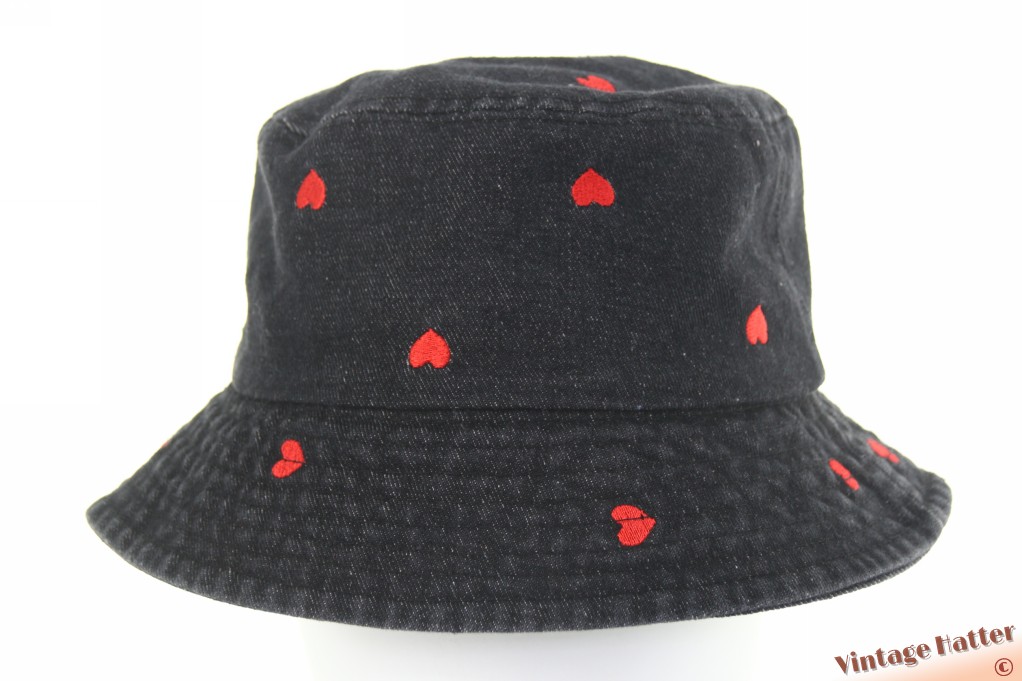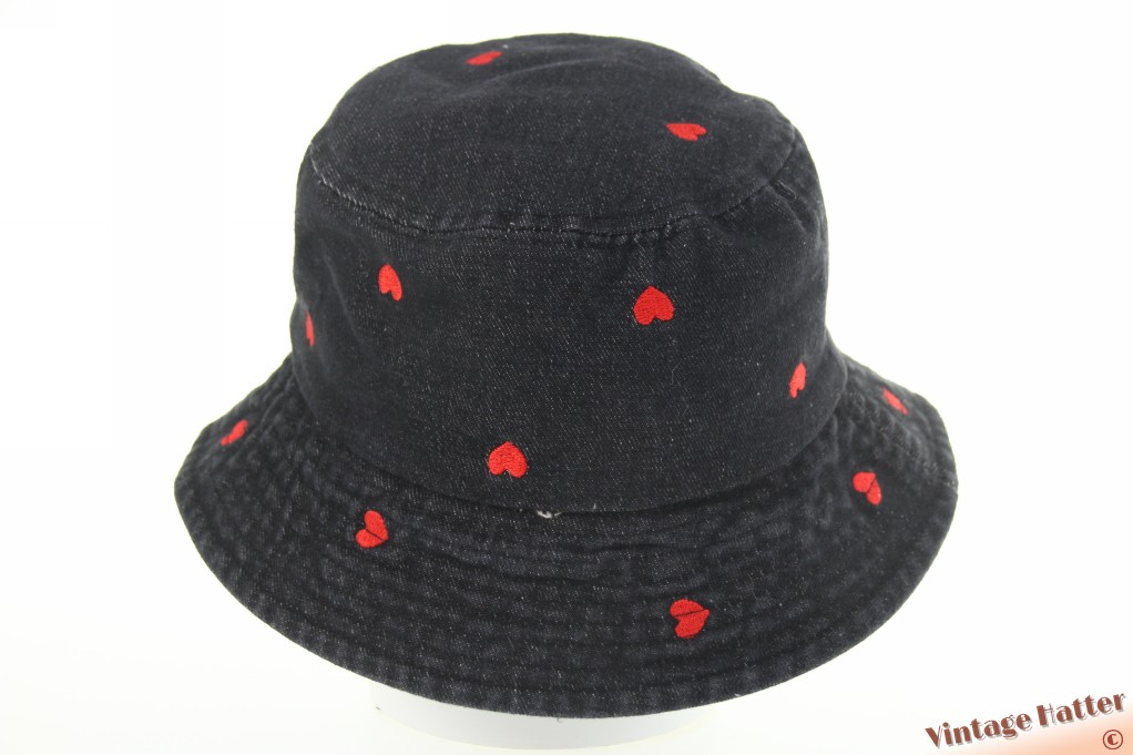 Buckethat black denim with red hearts cotton 57-59 [new]