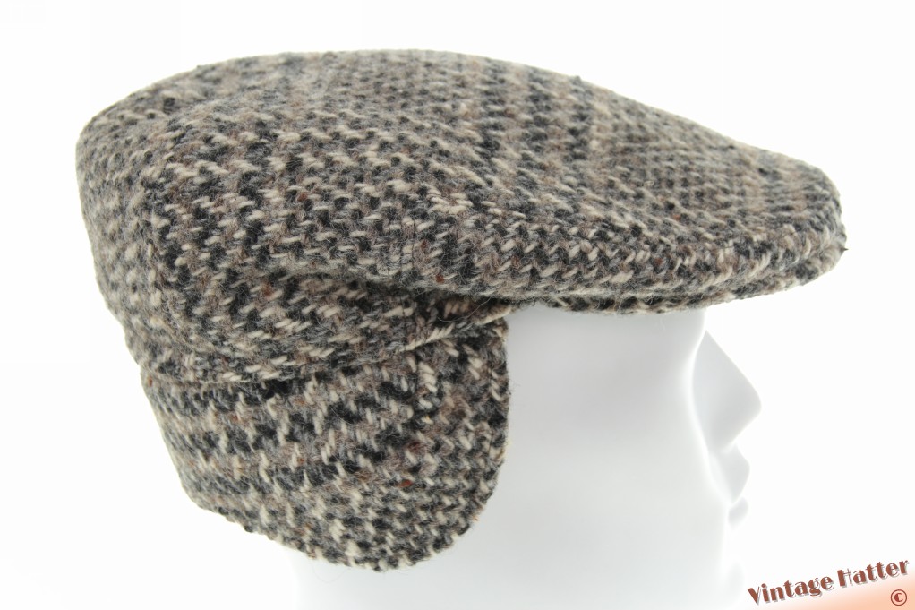 Platte pet King Cap grijstinten wol met oorwarmer 58