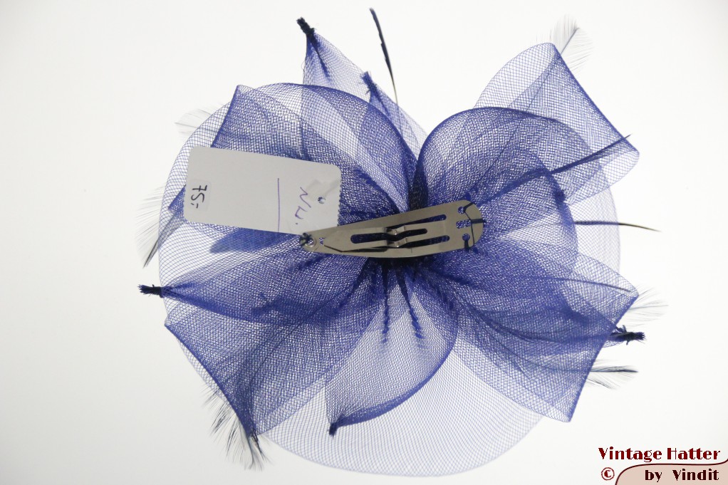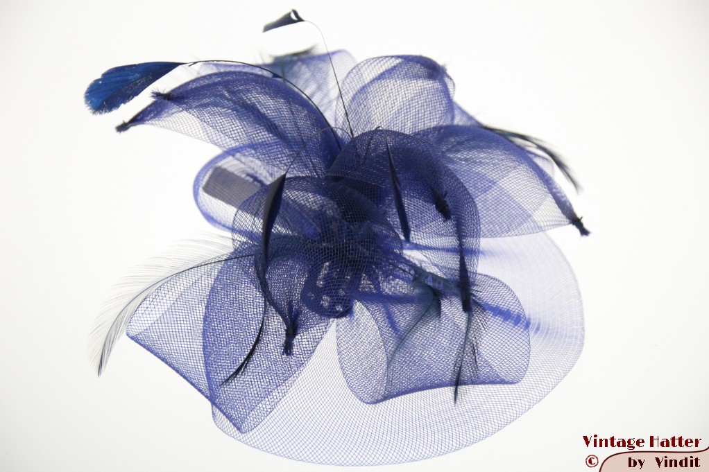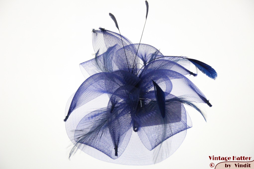 Disc Fascinator donker blauw met veren en clip [nieuw]