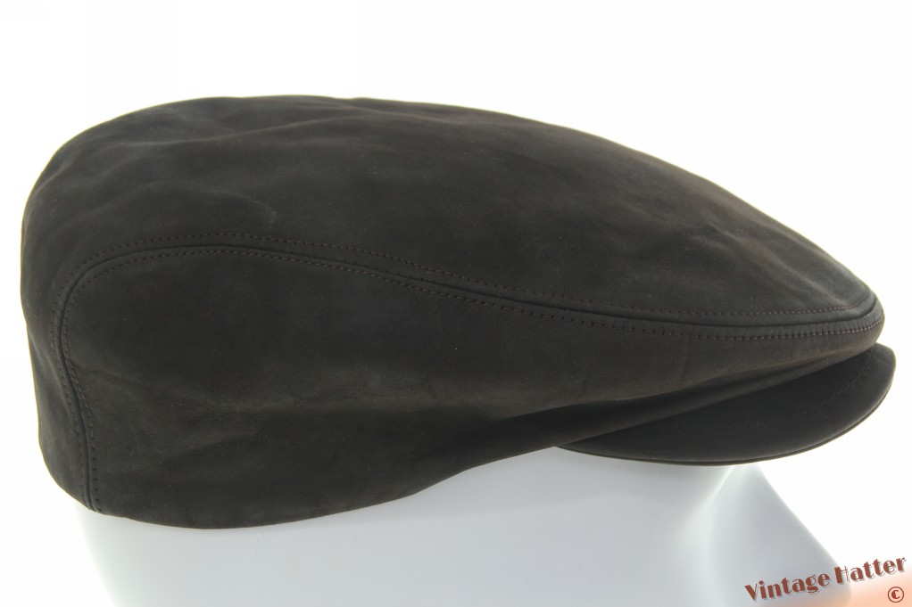 Platte pet Westbury grijzig bruin leer met drukknoop 57