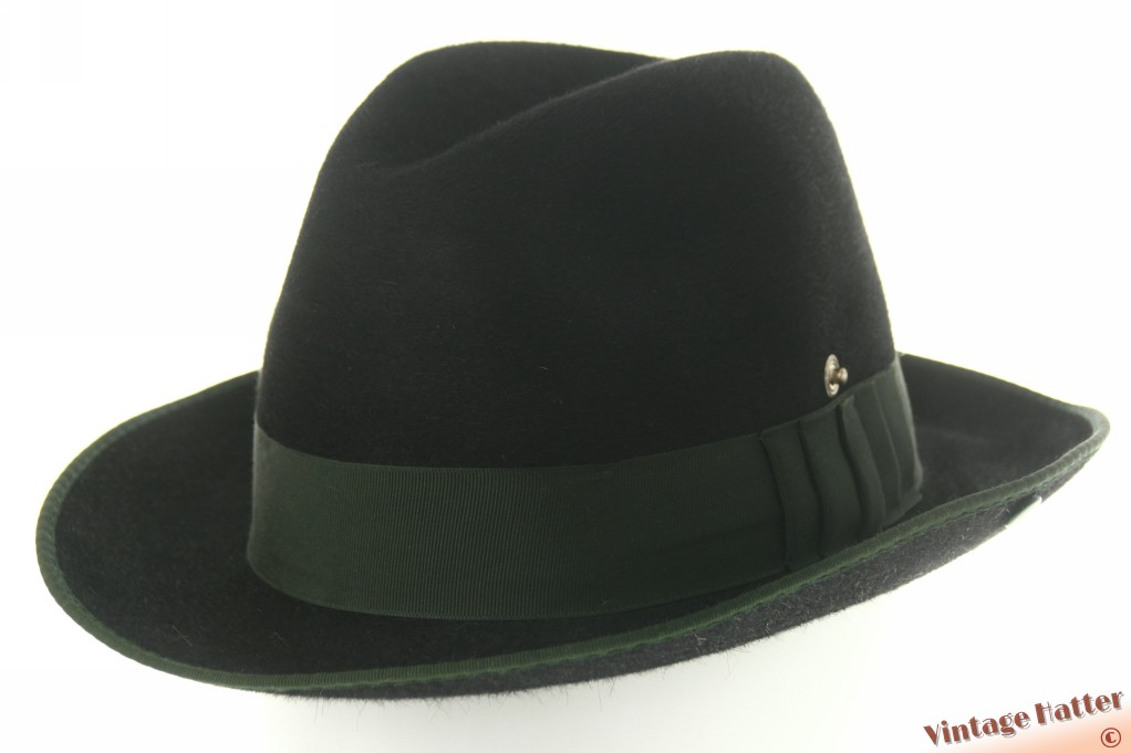 Jacht gleufhoed Klingner Schützenhut zwart kort haarvilt met drukknoop 55,5 (S)