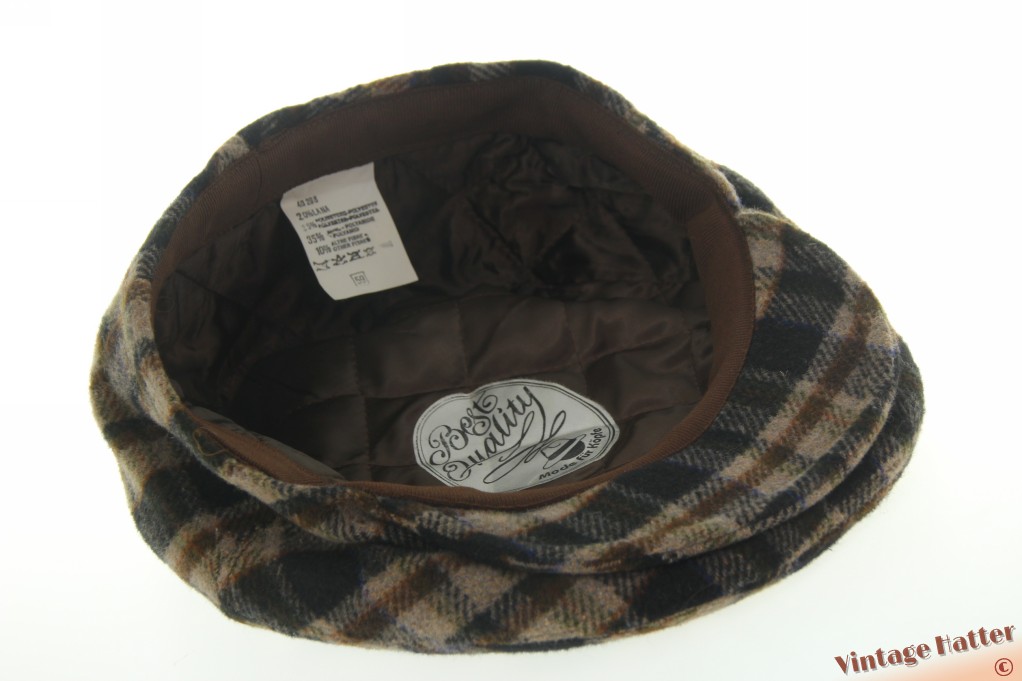 Dikke platte pet BestQuality beige bruin en donkerblauw geruit 58