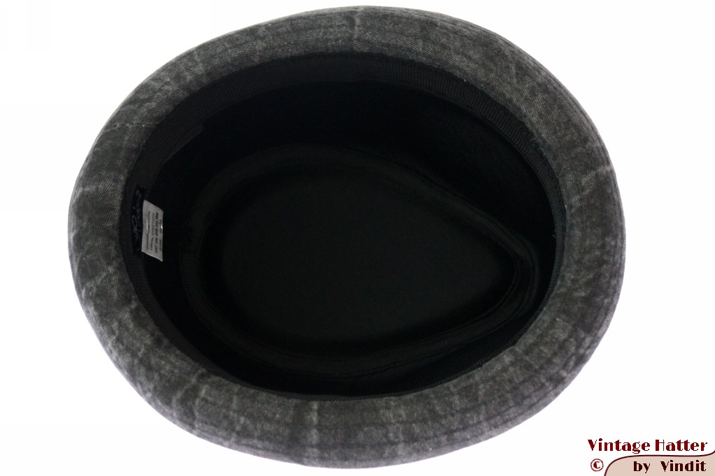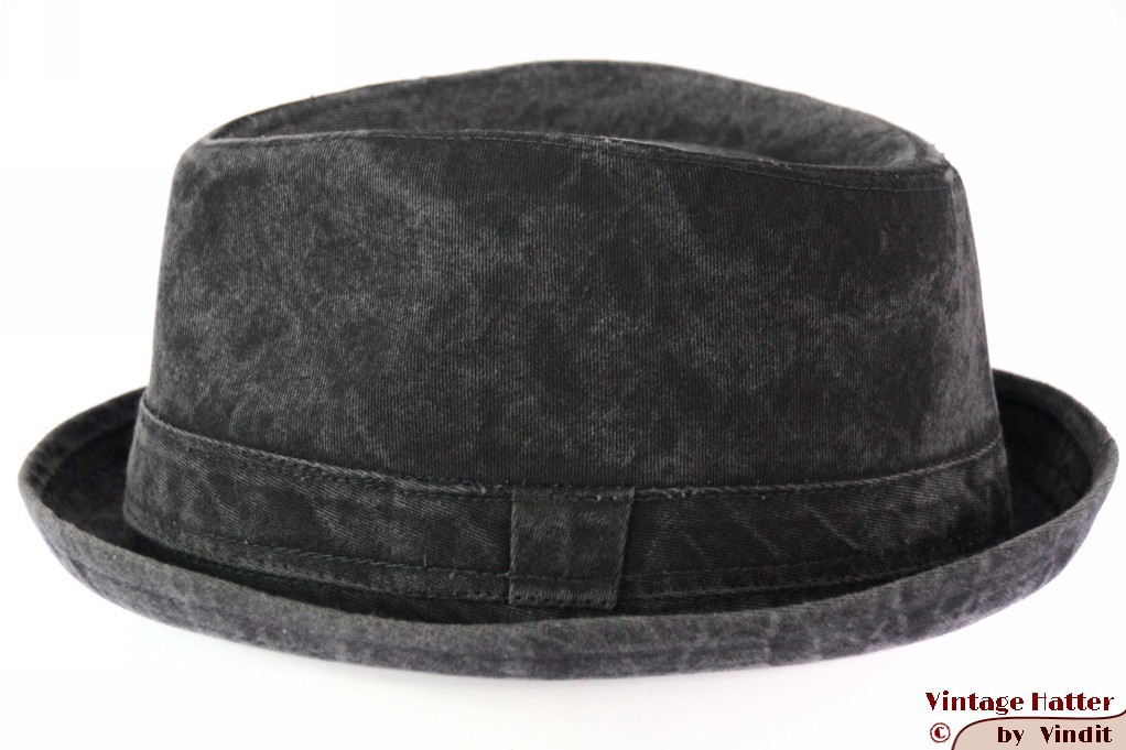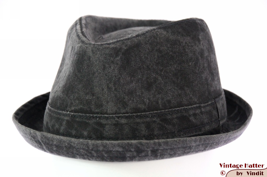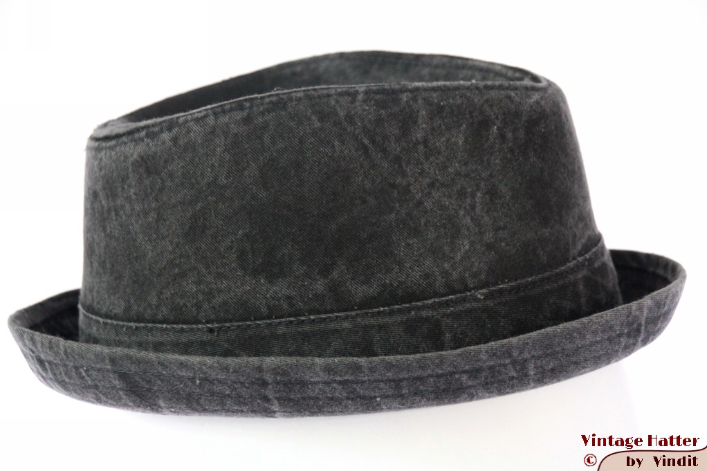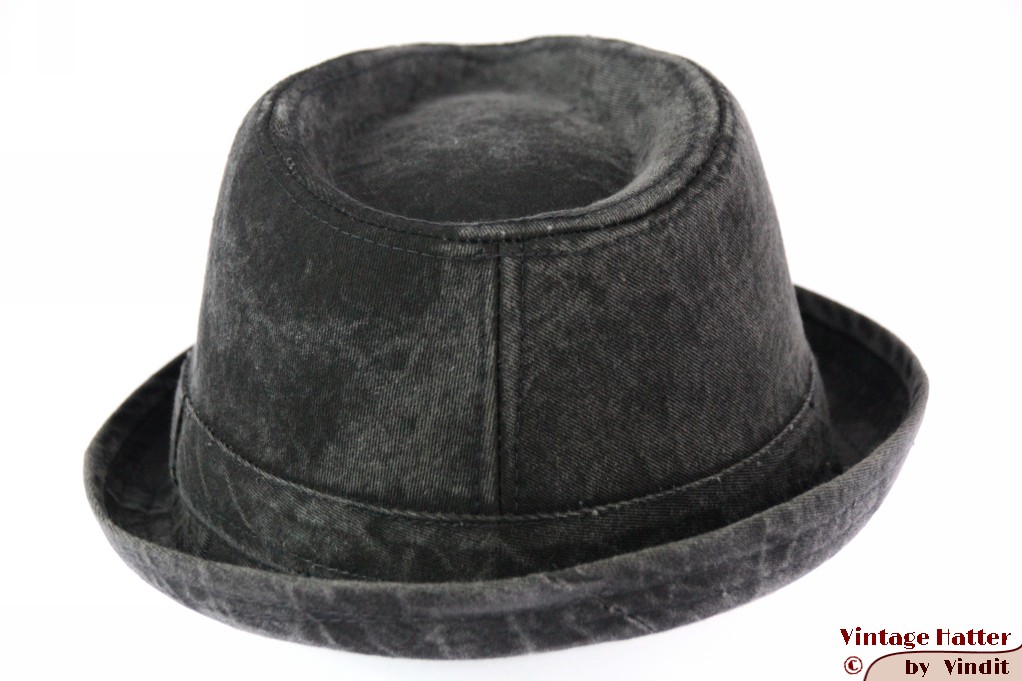 Trilby-achtige porkpie hoed zwart-grijs stonewashed jeans 60 (XL) [nieuw]